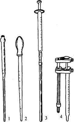 图10-2 输精器 1、2.为有刻度的玻璃吸管 3.1毫升注射器,前端联以塑料或玻璃管 4.能调节定量输精器