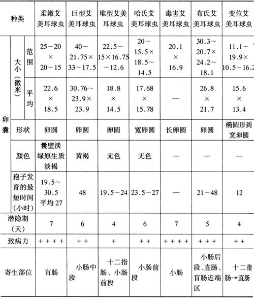 | 释义 | 鸡球虫病 鸡球虫病对雏鸡危害十分严重,分布广泛,几乎有鸡的地方均有球虫存在,15~50日龄雏鸡发病率最高,死亡率达80%以上。病愈雏鸡,生长受阻,长期不能康复。成年鸡多为带虫者,但增重和产蛋受到一定影响,可造成惊人的经济损失。 一、诊检要点 成年鸡和雏鸡带虫现象极为普遍,不能只根据从粪便或肠壁刮取物中发现卵囊,就确定为球虫病。应根据粪便检查、临床症状、流行病学调查(发病季节、病鸡日龄等)和病理变化等多方面情况综合判定。 (一)临床表现 症状轻重一般取决于一次感染的卵囊数量和虫种。单独感染一种球虫而摄取的卵囊数量在103以下时,几乎不显症状;当几种卵囊混合感染时,症状加剧,雏鸡死亡率升高。 急性型病鸡病程约数日至二、三周。多见雏鸡。病初精神不佳,羽毛耸立,食欲减退,泄殖孔周围羽毛为液状排泄物污染、黏连。随着肠壁上皮细胞大量破坏,使鸡发生自体中毒,病鸡出现共济失调、翅膀轻瘫,渴欲增加,食欲废绝,嗉囊内充满液体,粪呈水样并带少量血液。柔嫩艾美耳球虫引起的盲肠球虫病,粪便则初呈咖啡色,以后完全变为血粪。末期发生痉挛和昏迷,不久死亡。慢性型多见于6个月以上的成年鸡,病期较长。病鸡逐渐消瘦,足和翅轻瘫,产蛋减少,有间歇性下痢,很少死亡,有并发症时死亡率提高。近期肉鸡发生并发ND的病例很多,有点头、扭颈、瘫痪等神经症状。 (二)病理剖检 鸡尸消瘦,鸡冠与黏膜色苍白或发青,泄殖孔周围羽毛被液状排泄物污染,常带血液。由于球虫种类不同,对肠管侵害的部位和程度也不同。 柔嫩艾美耳球虫主要寄生于盲肠,急性型,两只盲肠高度肿大,可为正常的3~5倍,其中充满新鲜或凝固的暗红色血液。盲肠上皮增厚,严重糜烂和溃疡。感染第5~6天,盲肠壁出现特征性出血或后期出现硬固的干酪样肠心。 毒害艾美耳球虫主要侵害小肠中1/3段,严重时,病变可扩展到整个消化道,造成肠管扩张、增厚,严重坏死。在裂殖体繁殖的地方,出现明显的白色斑点,与黏膜上的许多小出血点相间杂。 巨型艾美耳球虫寄生于小肠中段的上皮细胞内,使小肠呈现出血性肠炎,肠壁增厚,气胀,肠内容物黏稠,呈淡灰色、淡红色或淡褐色。 堆型艾美耳球虫多在上皮表层发育,并且同一发育阶段的虫体聚集在一起;被损害的十二指肠和小肠前段出现大量淡白色斑点,排列成横行,外观呈阶梯样。 哈氏艾美耳球虫损害小肠前段,仅见于浆膜面有出血点,严重的卡他性炎症和液状肠内容物。 布氏艾美耳球虫侵害小肠后段、直肠和盲肠近端区,严重病例出现凝固性坏死,整个黏膜为一种干酪样腐蚀的表面所覆盖。在中等程度的感染中,黏膜上发生出血性条纹,小肠中充满浓稠的血性黏液样渗出物。 变位艾美耳球虫寄生部位可从十二指肠环延伸到直肠和早期病变出现在小肠前段的上皮细胞中,轻度感染时,出现单个的包含卵囊的斑块。严重感染时,可出现散在的或集中的斑点。肠内容物可能包含奶油样或白色物质,偶见有血丝。 (三)流行特点 鸡是这几个已知种的惟一天然宿主。凡被病鸡或带虫鸡的粪便污染过的饲料、饮水、土壤、用具等都有卵囊存在;其他鸟类、家畜和某些昆虫以及饲养管理人员均可成为本病的机械性传播者。本病的感染途径是吞食有活力的孢子化卵囊,即所谓同居感染途径,平养肉用仔鸡易发生球虫病原因即在于此。15~50日龄的雏鸡发病率最高,死亡率达80%以上。病愈雏鸡,生长受阻,长期不能康复。成年鸡多为带虫者,成为本病感染源。 卵囊在温暖潮湿的地区最适宜发育形成子孢子,但对高温和干燥的抵抗力较弱。饲养管理条件不良可促成本病发生,而且常波及全群。发病时间与气温和雨量关系密切。通常多在温暖季节发生,但现在一些密闭式大规模集约化鸡场中全年都有本病发生。 发病机理:鸡球虫为直接发育型,无需中间宿主。鸡吞食感染性卵囊后,在消化液作用下,释出子孢子,在肠内子孢子侵入上皮细胞,变为裂殖体,产生大量裂殖子,又进入新的上皮细胞,称为无性生殖。如此裂殖生殖几代后,大部分裂殖子在上皮细胞内形成大配子和小配子,大小配子结合后成为合子,称为有性生殖。合子周围迅速形成一层被膜,成为卵囊。卵囊随宿主粪便排出体外,在合适条件下卵囊内发育成孢子囊和子孢子,含有成熟子孢子的卵囊成为感染性卵囊。 裂殖体在肠上皮细胞中大量增殖时,破坏肠黏膜细胞,引起肠管发炎和细胞崩解,使消化机能障碍。同时肠壁的炎性变化和血管破裂,大量体液和血液流入肠管内,导致病鸡消瘦、贫血和下痢。崩解的上皮细胞变为有毒物质,使机体发生自体中毒,因此可以把球虫病视为一种全身中毒过程。受损伤的肠黏膜是病菌和肠内有毒物质侵入机体的缺口。失血和中毒是鸡死亡的重要原因。 不同种类球虫寄生部位不同,但以寄生于肠绒毛上皮细胞的种类最多,其次有寄生于固有层、黏膜层以及黏膜下层,寄生于肠黏膜下部的球虫种类病原性最强。 在球虫自然感染病例中,一种球虫单独感染的病例很少,一般为几种球虫混合感染,但并不是几种球虫都同等程度感染。已知寄生于小肠的球虫种类共有8种,在寄生部位相同的种类中,当某一种首先寄生并开始增殖时,以后再感染的球虫种类即得不到充分增殖。在同时感染的情况下,增殖快的种类,即潜隐期短的种类,愈有优先增殖倾向。为此,在发病