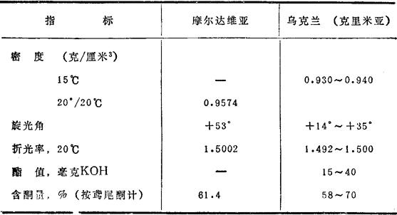 表16.3 苏联自干鸢尾根生产的鸢尾净油的物理化学指标