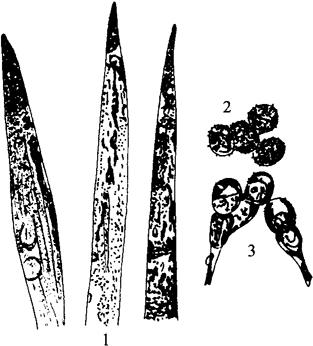 1.叶片症状 2.夏孢子 3.冬孢子