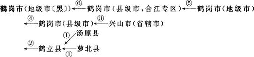 ①1939年6月析汤原、萝北两县析置鹤立县。②1946年鹤立县改为兴山市(省辖市)。③1949年兴山市改称鹤岗市(县级市),隶松江省。④1954年鹤岗市升格为地级市,隶黑龙江省。⑤1958年鹤岗市改为县级市,隶合江专区。⑥1961年鹤岗市升格为地级市。