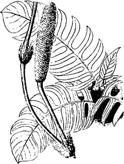 麒麟叶又名百宿蕉。原产台湾、海南、广东等热带地区。可作垂直绿化材料,美化环境,也可盆栽观赏。因其株型庞大,攀缘而上,犹如绿龙飞天,气势宏大,令人感到绿色的美观和力量(图2-190)。