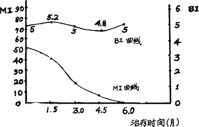 | 释义 | 麻风杆菌活力判定的意义和方法 由于ML体外培养尚未成功,研究ML活力的判定法不得不以活组织菌悬液来进行。由于测定ML活力在临床实践和理论研究中都有重要意义,这方面的研究颇多。简单、快速、可靠的ML活力测定方法可用以判断疗效、测定菌的感染力、进行药物敏感试验、发现耐药菌株、筛选与评价新的有效抗麻风药物,乃至探讨ML的感染与传播途径等。 一、形态指数法: 尽管形态指数(简称MI)这一指标已广泛应用于临床和实验研究,但一直存在着争论。主要是各家的研究结果不完全一致。许多人发现MI为“0”的菌悬液接种小鼠足垫后能获得正常的生长繁殖曲线。相反,完整菌却有不能生长繁殖者;还有一种现象是ML在体内高速增殖时失去抗酸性。体外培养过程中有人亦看到有一个无抗酸性的阶段,而且能从无抗酸性转变到有抗酸性。这些例证说明单靠抗酸染色后显示的形态完整与否来判断菌的死活和有无感染力是不太可靠的,尤其近年来ATP法、FDA/EB法(见本节)与MI法的比较结果更支持上述的结论。但多年的实践表明虽单靠MI不能判定ML有无感染力,但如果在同一个体建立了基础线,MI在判断疗效和科研工作中还是有一定价值的。特别是在不能开展小鼠足垫接种和用ATP法、FDA/EB法测定ML活力的地方,运用MI判断疗效和筛选抗麻风药物还是一个有用的方法。若单凭细菌指数(简称BI,见第二章),由于检查周期太长,是相当费时间的,特别在抗麻风药物的筛选方面。图1-6的结果,提示MI的可用性。