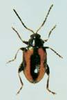 | 释义 | 黄条跳甲 也叫“黄条跳蚤”。 蔬菜害虫。昆虫纲,鞘翅目,叶甲科。中国有三种,主要是黄曲条跳甲(Phyllotreta vittata),成虫体长约3毫米,黑色,有光泽,鞘翅上各有一条暗黄色纵行弯曲条纹,后足腿节发达,善于跳跃。幼虫黄白色。年发生4~8代。危害十字花科蔬菜。幼虫在土中危害菜根,使苗枯死。成虫吃苗叶成孔,变色枯萎。 防治法:避免连作,清洁田园,选用无虫苗,灌水,喷洒药剂。