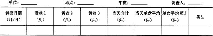 | 释义 | 黄条跳甲测报调查方法 黄条跳甲(Phyllotreta striolata)属鞘翅目叶甲科。全国菜区都有发生,有4种近似种。该虫是寡食性害虫。主要为害十字花科的青菜、大白菜、甘蓝、花椰菜、油菜、萝卜、芥菜等。越冬成虫在当地温度稳定上升到10℃左右时,开始活动取食。适宜黄条跳甲生长发育的温度范围15~35℃;最适环境温度为21~27℃,相对湿度为80%~100%。成虫寿命长,平均30~50天,产卵期可延续25~45天。平均每头雌虫产卵200粒左右。由于超长的产卵期超过了卵至成虫羽化的历期,是世代重叠现象极严重的主要原因。影响发生量的关键因子是卵的孵化要求有100%的相对湿度,因此,多雨、潮湿的年份发生重。 1 调查内容与方法 1.1 色诱成虫消长系统调查 1.1.1 调查时间 当地冬春季温度达到10℃左右时开始至温度回落到10℃以下时止(南方地区可能要全年调查时,以自然年度的法定日期作为划分年份数据的起始点与终止点)。 1.1.2 调查方法 选择有代表性的茬口、主栽品种,在露地观察点放置30cm×30cm×10cm中黄色方形诱杀盆(或用18~25cm直径,中黄色圆盆)3只(编号)。黄色诱成虫应将诱虫设备放在空旷、便于调查进出的田边,周边应避免有同类的光谱干扰,各盆间隔距离10m以上,在盆深2/3左右位置开5~8个2mm直径的溢水孔,盆放在近地面,盆内盛清水至溢水孔,并加入少量敌百虫农药,防止已诱捕入盆的成虫再跳出。每日上午同一时间(一般上午上班时)调查隔日的投盆虫数。将结果填入表6-120。 表6-120 黄条跳甲黄盆诱捕消长记载表