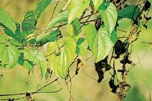 | 释义 | 黄独(Dioscorea bulbifera) 别称“金丝吊蛋”、“金线吊哈蟆”。 薯蓣科。多年生缠绕藤本。有球形或圆锥形块茎。 茎圆柱状。 叶互生,近圆形或心脏卵形,先端尖锐,具方格状小横脉。珠芽球形,腋生。 夏秋开花,花单性,穗状花序丛生。种子、块茎或珠芽繁殖。 印度、马来西亚、菲律宾、日本及中国长江以南各地均有分布。块茎可制淀粉,去苦涩后,方能食用;亦入药,名“黄药子”,有消肿解毒、化痰散结功能。