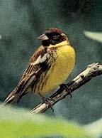 | 释义 | 黄胸鹀(Emberiza aureola) 亦称“禾花雀”、“寒雀”。 鸟纲,雀科。体长约15厘米。 雄鸟头部黑色,背栗褐色,腹部鲜黄而稍带绿彩,胸部横贯栗色带状斑,两胁有褐色纵纹。雌鸟头部黑色不显着。在中国东北繁殖,秋迁南方越冬。迁徙途中常成群啄食谷物,危害农业。