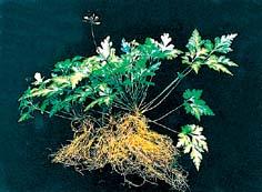 多年生草本。地下有长根状茎。复叶,基出,具长柄,有三小叶;小叶裂成三片,有锯齿。