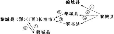 ①1912年称黎城县;1937年8月将靠近涉县的偏城、宇庄等54个村划出,设立偏城县。②1943年10月31日以横岭为界,将黎城县分为黎城县与黎北县。③1945年11月5日恢复黎城县原建制。④1958年9月10日,潞城县的石梁、西流两乡和曹庄、安东、南马庄、井峪、红土坡5村划归黎城县。⑤1961年11月1日将划入黎城县的两乡5村复归潞城县。