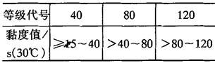 注:膨润土可分为酸性和碱性两类,分别用S和J表示 5.2.2.2 合脂黏结剂(ZB12216—90) 合脂是以石蜡为原料制取合成脂肪酸过程中蒸馏后的残渣(副产品),并以适量溶剂稀释配成的铸造砂芯用合脂黏结剂.铸造用合脂黏结剂按黏度值分为三个等级,见表5-32,按工艺试样干拉强度分为二级,见表5-33. 表5-32 合脂黏结剂按黏度值分级