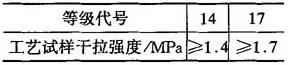 表5-33 合脂黏结剂按工艺试样干拉强度分级