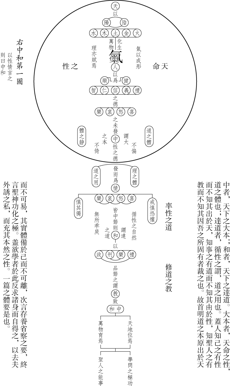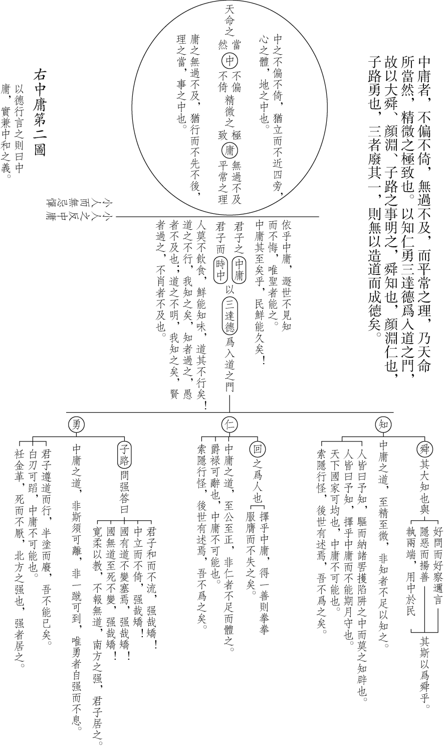 【題 解】中庸七圖作者李泰壽(一六五八—一七二四),字士亨,號止谷,本貫全州。朝鮮英祖時文臣,師從朴世采。司馬試合格,不仕,隱居坡州沙牧村鑽研學問。後被薦舉,授王子師傅、書筵諮議等職,皆不就。本書收録於止谷遺稿,將全篇三十三章分為六個大段落,通過中和、中庸、費隱、誠、大德小德、求本等六圖説明中庸要點。(崔錫起)
