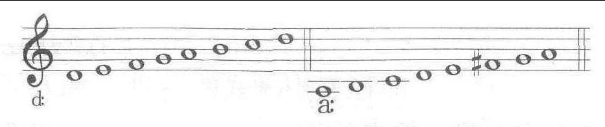 其中,利底亚调式、混合利底亚调式和伊奥利亚调式之主音上构成的三和弦为大三和弦,具有明朗的特性;多利亚调式、弗里几亚调式和艾奥利亚调式之主音上构成的三和弦为小三和弦,具有暗淡的特性。到17世纪末才最后确定只用两种现代调式,即大小调式,其中大调式与伊奥利亚调式的音程结构相同,小调式是利底亚调式与艾奥利亚调式的结合,其七度音要求升高半音。