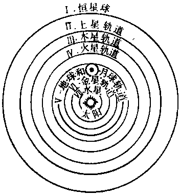 1543年达塔格利亚[意]将欧几里得《几何原本》译成意大利文出版发行。 哥白尼著的《天体运行论》出版,共6卷。该书否定了统治西方1 000多年的“地心说”,创立“日心说”,建立起一个崭新的宇宙体系——地球是一颗行星,它和别的行星一起,在同心圆周上绕太阳运行。从内往外,依次是水星、金星、地球、火星、木星、土星。月球绕地球运行,同时也被地球带着绕太阳运行(图)。这是天文学上的一次伟大的革命。它彻底改变了自古以来宇宙结构的传统观念,从根本上动摇了上帝创世的理论基础。