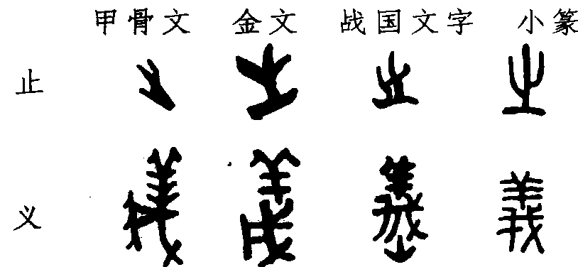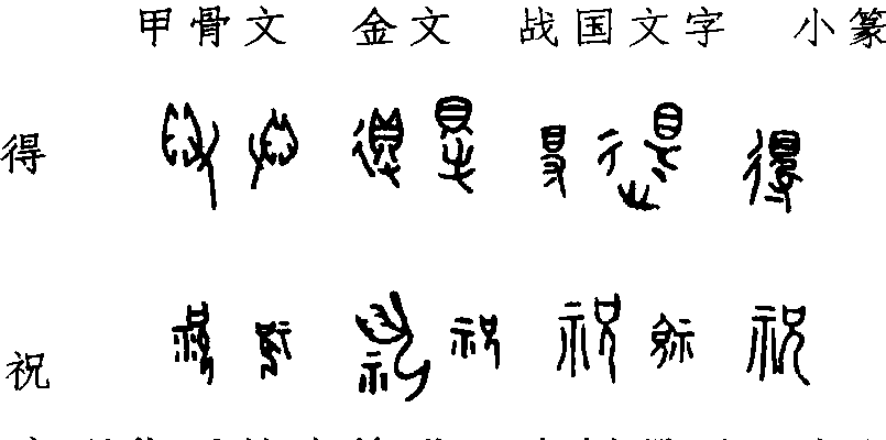 (3) 结构定型:由甲骨文、金文、战国文字的部件上下左右自由书写,变成具有相对固定的位置,同一字而有不同形体的现象也大为减少了。如: