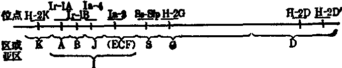 | 释义 | H-2基因复合体 H-2基因复合体H-2基因复合体是控制形成小鼠主要组织相容性抗原的基因群。它位于小鼠第17对染色体Ⅸ连锁群内。目前已将H-2基因复合体划分为五个主要区域,即K、I、S、G和D区。I区又可分为I-A、I-B、I-J、I-E、I-C和I-F (后三个亚区即附图的ECF部分,因功能测定还不能肯定它们是完全分开的) 等亚区。每区或亚区至少包含一个基因位点,命名为H-2K、Ir-1A、Ir-1B、Ia-4、Ia-3、Ss-Slp、H-2G和H-2D。近年的工作表明D区产物可能代表二种结构相似的分子,故推测在D区可能有2个位点,即H-2D,H-2D′; 此二位点共同存在于D区,但现尚不能用重组的方法将它们分离,故暂时以[H-2D,H-2D′]表示之。它们的功能各不相同。K区和D区基因主要与H-2抗原的特异性有关,Ⅰ区基因主要与机体的免疫应答有关,S区基因与血清蛋白质含量及补体成分水平有关,G区与血型抗原有关。