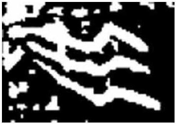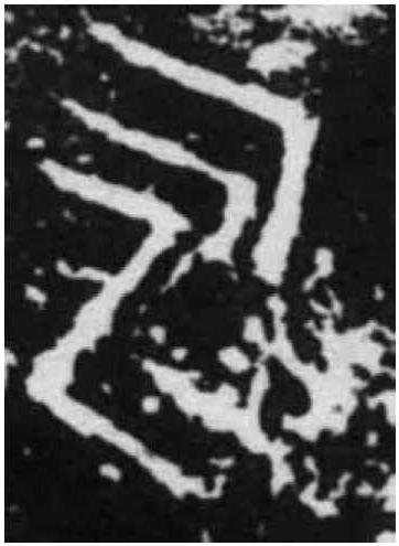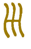 甲骨文合集18622,殷……。按: 象水流擁塞成災之形。甲骨文合集17213,殷冓亡。甲骨文合集17214,殷貞于翌□戌步□。甲骨文合集28652,殷叀田省亡。父癸鼎, 殷周金文集成1694,殷父癸。《説文》:“, 害也。从一雝川。《春秋傳》曰: ‘川雝爲澤, 凶。’”“”字甲骨文象水流擁塞成災之形。 或横或豎。 卜辭均指災害。
