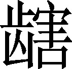 齿。例:乱提意见,胡咬~人!❍ 这人心黑,有点权给人办点事,就硬咬~住人、愒(kái 贪)~住人索要东西!❍ ~(给人中指)!咬~住嫑放口(戏谑语)。《篇海类编》:“,齿也。”