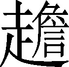 前趋皃。例:有点远,用手~不着。❍ 头仰挈,硬(ɡēn)~着向前看。❍ 路滑向前闪~了一跤。《集韵》:“,前趋皃。”