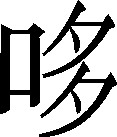 ❶大口皃。例:他说话口气大,爱~,谝声美!❍ 爱说大话,叫人问得嘴张得圆没啥说。❷大声喊。例:这女人~声大,爱喊。《广韵》:“,大口。”《玉篇》:“,大声也。”