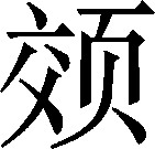 头凹不媚。例:这女子前颁(běn)颅,后脑坡,~子颡,南北调,给人人不要!❍ 凹兜脸,~子颡,不值呄(ɡá 钱)!《龙龛手鉴》:“,头凹不媚也。”