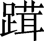 也作“踜” 行皃。例:这女人爱~,整天~过来~地翻是非。❍ 她爱麻,见说就里~地,给人骻(kuà)脸子!《集韵》:“,行也,或作。”又“,行也。”《广韵》:“踜,踜蹬,行皃。”