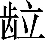 咬(kǔn)硬坚物声。例:用牙骨头,撕扯~骨头缝里的肉。❍ 用牙~骨上的肉。《集韵》:“,啖坚物也。”