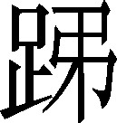 zhuī足不前;行皃。在关中一只脚坠空,用单脚跳行,叫跳~~。小儿有两种游戏,一是跳房,二是斗鸡,都是用单脚跳。故单脚跳行叫~。也作“跑”。《集韵》:“,足不前。或从足。”《龙龛手鉴》:“,行皃也。”