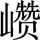❶ 山高锐皃。例:山峰~到云端里去了。❍ 西安有个钟鼓楼,半截子~到天里头(小儿语)。❷也单用“”。例:树梢子~的(māo)天高!《广雅》:“岏,高也。”《集韵》:“岏,山锐皃。”