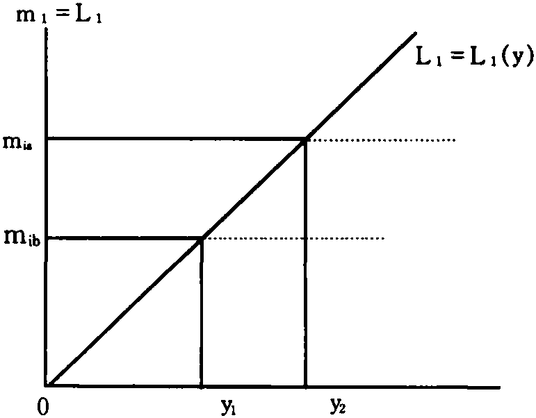 第三个公式表示在货币市场上供求相等的均衡条件,它也表明在m等于一定值时,y、r之间的函数关系。这个函数关系也就是在满足货币市场均衡条件下的r与y数值的各种不同的配合,表示这种r与y的函数关系的曲线被称为LM曲线。它可以用图2 (a)、(b)、(c)、(d) 表示的方法来求取: