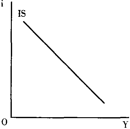 ☚ 停滞论 LM曲线 ☛ IS曲线 IS曲线IS curve描述商品市场达到均衡,即投资(I)=储蓄(S)时国民收入与利率之间存在着反方向变动关系的曲线。附图横轴代表国民收入(Y),纵轴代表利率(i),向右下方倾斜的IS曲线表示了商品市场上达到均衡时,利率高,则国民收入小;利率低,则国民收入大。在商品市场上达到均衡时国民收入与利率呈反方向变动的原因是:根据凯恩斯主义的国民收入决定理论,利率与投资是反方向变动的,即利率上升,投资减少;利率下降,投资增加。投资是总需求的一个重要组成部分。投资的变化与国民收入的变化则按乘数原理呈同方向变动。所以,利率与国民收入存在反方向变动的关系。以Y代表国民收入, Y= )和投资的利率弹性(b), 越小,b越小,则IS曲线的斜率越大;相反, 越大,b越大,则IS曲线的斜率越小。IS曲线的位置取决于自发总需求()。 当增加时,IS曲线平行地向右上方移动;当减少时,IS曲线平行地向左下方移动。由IS曲线上任何一点表示的利率与国民收入的结合,都是I=S,即商品市场上的均衡。在IS曲线以外的任何一点上利率与国民收入的结合都是I≠S,即商品市场的失衡。位于IS曲线右边的任何一点,都是I