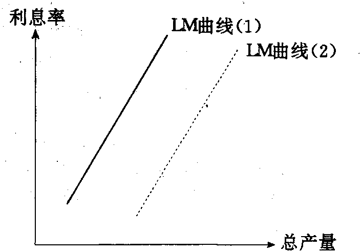 )既定时,货币交易需求与预防需求(L1)增加,则货币投机需求(L2)必然减少。L1的增加必然是国民收入(Y)增加,L2的减少必然是利率(i)的上升。因此,货币市场上达到均衡时,国民收入与利率之间是同方向变动的关系。以K代表货币需求的收入弹性,以h代表货币需求的利率弹性,则LM曲线的公式可以写为:
