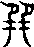 [甲骨][金文][小篆] 《說文》: ,二卪也。 巽从此。闕。(九篇上)《說文》: , 具也。 从丌,聲。,古文巽。 , 篆文巽。(五篇上)行禮或宴席時列坐有序。