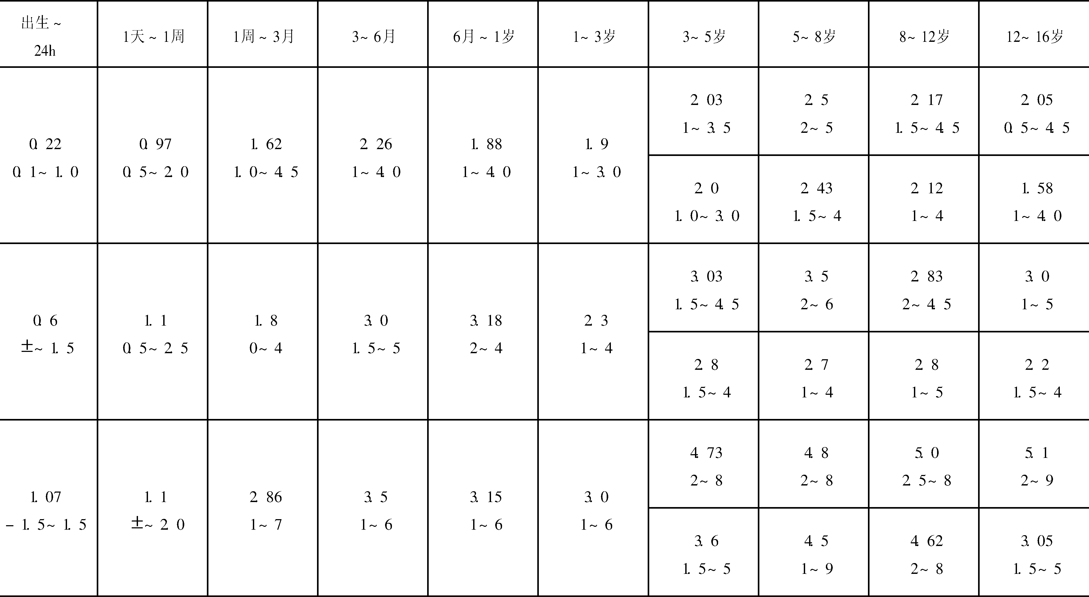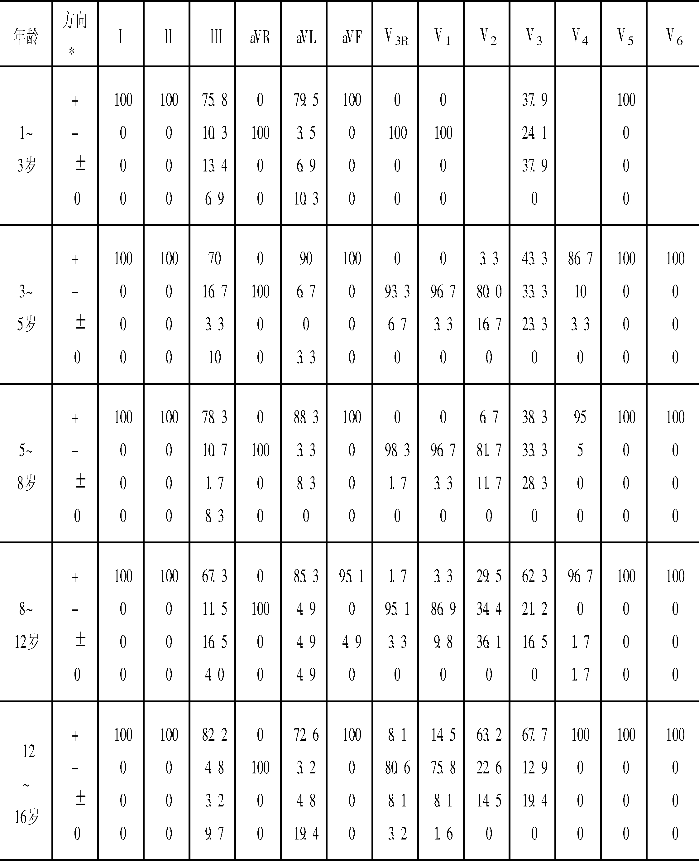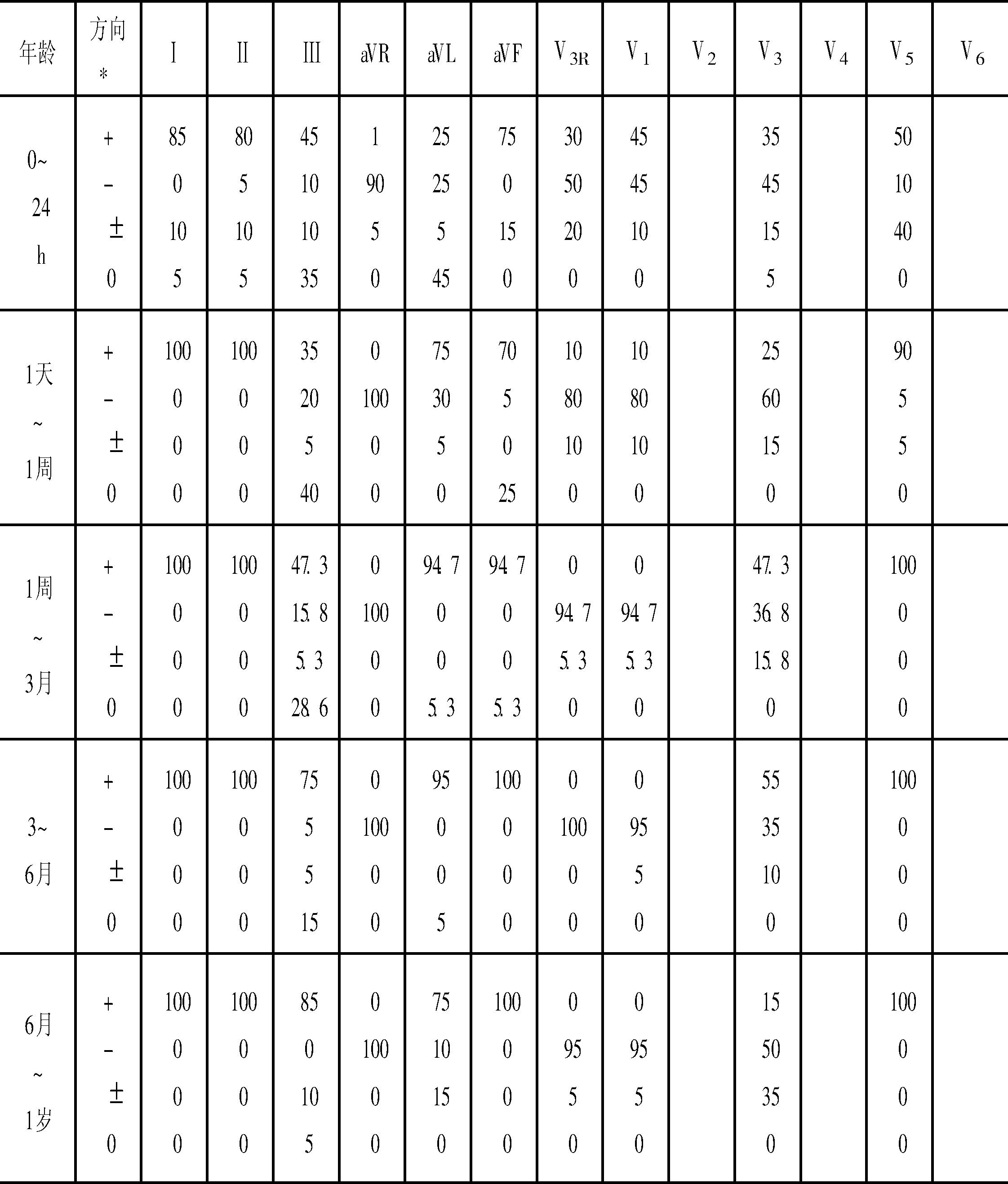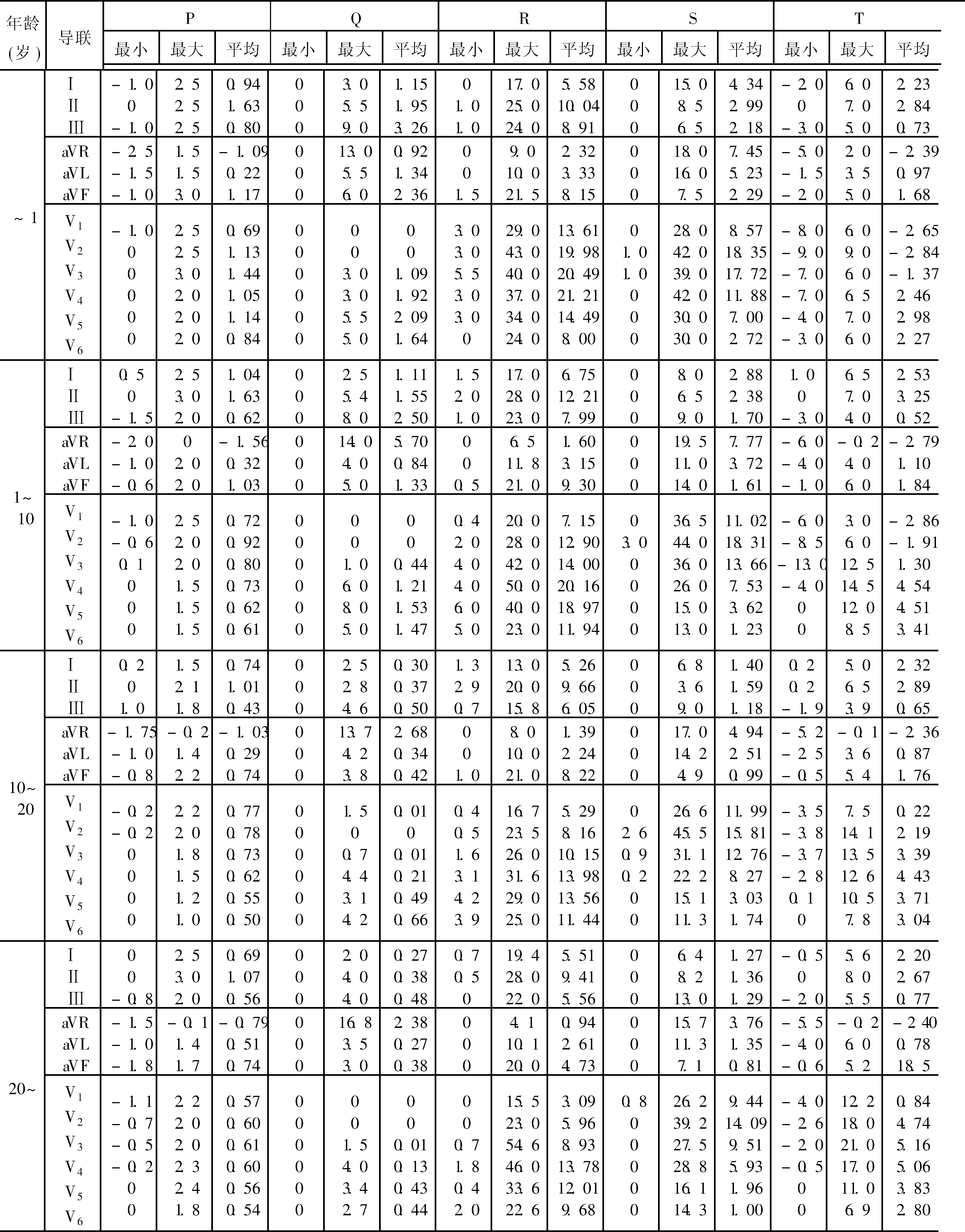 表2 各年龄组T波在Ⅰ、Ⅱ及V5导联上的平均值及范围(mV) 表3 心电图各波电压的正常值(单位:0.1mV) ☚ U波 Tp波 ☛ |