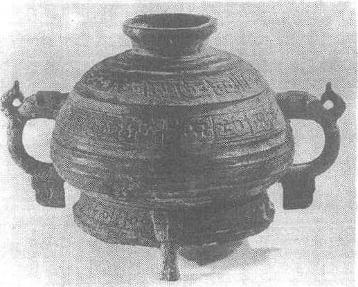 西周。盛食器,礼器。通高22.8厘米,口径19.5厘米,腹深11.1厘米。重5.5公斤。1960年陕西省扶风县齐家村窖藏出土。陕西省博物馆藏。此簋有盖,弇口,象首形双耳,下有垂珥,鼓腹,圈足下附三扁足。盖沿、器沿和圈足均饰一圈窃曲纹带,盖面和器腹为瓦纹。盖内有铭文11字,记载中友父作器。铭文中中友父当即中义,中是氏,义是名,友父是其字。古人的名和字的含义是相呼应的。《说文解字》:“友,同志为友。”《释名》:“义,宜也,制裁事物使各宜也。”引申之,与众共之亦曰义。交友须重信义,故名义字友父。此器为西周中晚期之物。