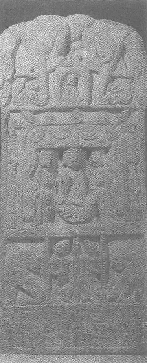 北周建德二年(公元573年)。通高90厘米,宽39厘米。1972年甘肃省张家川回族自治县木河乡出土,甘肃省博物馆藏。四面造像。碑额正、背面各雕小龛,内雕单身座佛。碑身造像分两部分,正面上部大龛内饰一佛二菩萨,外左右各刻一龙头,口衔流苏下垂至地;下部四个小龛内分别刻饰雄狮和昆仑奴,龛下刻题记。背面上部大龛浮雕一佛二胁侍菩萨,下部凸刻两架牛车,两个骑士,一个撑华盖的侍从,边缘刻铭记。两侧上部龛中雕单身佛,下刻题记。