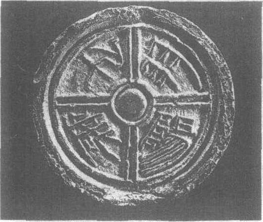 战国·秦。面径16.8厘米。1953年陕西省宝鸡市东关外羽阳宫(先秦时期的名宫之一)遗址出土,陕西省博物馆藏。瓦当为圆形,中心饰一个乳丁纹,其外以双线分割四等份,内书“羽阳千岁”四字。布局匀称,字体美观。这是现已发现的最早的秦瓦当。在羽阳宫遗址发现的瓦当中,还有书以“羽阳万岁”、“羽阳千秋”、“羽阳监渭”等字的,而尤以“羽阳千岁”字纹的为最多。这种瓦当,早在北宋时已有出土。据宋王辟之《渑水燕谭录》载:“秦武公作羽阳宫,在凤翔宝鸡县界,岁久不可究知其处。元祐六年(公元1091年)正月,直县门之东百步,居民权氏,浚池得古筒瓦当……,独一瓦完。面径四寸四分,瓦面隐起四字,曰‘羽阳千岁’,篆字随势为之,不取方正,始知即羽阳旧址也。”有研究者认为羽阳宫为秦孝公时所建。“瓦当”是古代建筑檐头筒瓦前端的遮当。最初为半圆形,后变为圆形,从西周到明、清各代,瓦当在式样、花纹上都有所不同。它既是考古工作中判断遗址、墓葬年代的一种重要依据,又是研究古代手工业、书法、雕塑以及建筑的重要资料。