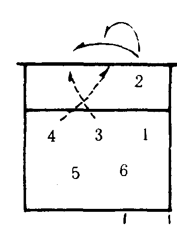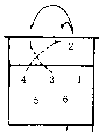 ❹重叠(梯次)进攻。一队员扣快球或佯攻掩护,另一队员助跑上步至其身后,在其下落时扣半高球。此种变化亦可改用短平快球进攻或佯攻掩护。教学方法:参见“中1—2”进攻。但必须根据“边1—2”进攻的特点进行安排。