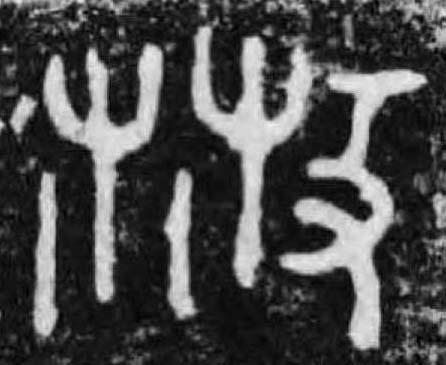 [甲骨][金文][小篆] 《說文》: , 分離也。 从林、从攴。 , 分㪔之意也。 (七篇下)撲打麻使表皮與莖分離,以便取其纖維紡織。