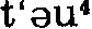 ◇ tǎo❶使不堵塞,能透气:~气tǎokì(使透气、解闷)。 ❷解除:~火气tǎo hěkì(败火) ❍ ~脱tǎotuāh(解脱)。 㪗dǒu <延川>摊、展: 把包袱~开! 㪗{}四6251①动(把包着或卷着的东西)打开;抖开。⑴江淮官话。安徽安庆〖 〗。把糖包~开。⑵西南官话。湖北武汉〖tߵou42〗。把包袱~开‖~被卧被子。湖北钟祥〖 〗。把毛巾~开。广西桂林〖tߵou54〗。把衣服~开。云南楚雄〖 〗。贵州清镇〖tߵou42〗。⑶徽语。浙江建德。⑷吴语。上海〖 〗。~开一张报纸‖请侬拿包裹~开来。江苏吴县光福〖tߵei31〗。~被头。江苏常州〖tߵei35〗。拿衣服~~开,𧟰团勒在一堂一起。江苏苏州〖 〗、无锡〖tߵei52〗、常熟〖 〗、丹阳〖 〗、江阴。浙江金华岩下〖 〗。个包~开来。浙江苍南金乡〖tߵao35〗。毯子~开盖身上。浙江杭州〖tߵei445〗、宁波〖 〗、舟山〖tߵai334〗、温州〖tߵau35〗、黄岩。⑸湘语。湖南长沙〖 〗。⑹赣语。安徽岳西〖 〗。~线。⑺粤语。广东阳江〖 〗。⑻闽语。福建厦门〖tߵau53〗。~开‖~行李。福建永春〖tߵau53〗。~索绳子。福建福州〖tߵau31〗、顺昌埔上〖 〗、三明〖 〗、福鼎澳腰〖tߵau45〗、莆田〖tߵau453〗、仙游〖tߵau53〗、漳平〖tߵau31〗。广东汕头〖tߵa53〗。个包裹个伊~出来看。广东潮阳〖tߵau53〗、海康〖tߵau42〗。台湾〖tߵau53〗。②动抖掉(尘土等)。⑴冀鲁官话。山东寿光〖 〗。你把面袋子~干净。⑵西南官话。四川成都〖tߵou53〗。把包包~干净。湖北钟祥〖 〗。把水~开。云南楚雄〖 〗。~~衣服。⑶吴语。上海〖 〗。㧱把被头~~清爽‖拿衣裳~一~,~脱点灰尘。江苏常州〖tߵei35〗。拿垃圾~~落。江苏无锡〖tߵei52〗。衣裳浪格的灰尘~~脱。江苏常熟〖 〗。浙江萧山。1935年《萧山县志稿》:「以手振物使展曰~。《集韵》他口切,展也。按即抖搂二字切读。」浙江宁波〖 〗、金华岩下〖 〗、苍南金乡〖tߵao35〗、杭州〖tߵei445〗。⑷湘语。湖南长沙〖 〗。③动掏;拿。⑴胶辽官话。山东牟平〖tߵou213〗。布袋~不出来。⑵闽语。福建永春〖 〗。~钱‖~物件。④动漂洗;涮洗。⑴冀鲁官话。山东利津〖 〗。⑵胶辽官话。山东牟平〖tߵou213〗。~衣裳。⑶江淮官话。安徽安庆〖 〗。衣裳~水。⑷西南官话。湖北武汉〖tߵou42〗。衣服再~一遍。湖北钟祥〖 〗。~衣服。⑸湘语。湖南长沙〖 〗。再~一道水。⑹赣语。湖北蒲圻。⑤动新布下水。⑴西南官话。湖北武汉〖tߵou42〗。新布要~一下。⑵湘语。湖南长沙〖 〗。⑥动通气;喘气;呼吸。⑴西南官话。湖北武汉〖tߵou42〗。屋里闭人,出来~一下。云南楚雄〖 〗。⑵吴语。上海〖 〗。侬看伊走起路来那亨介怎么这样~。上海松江。浙江金华岩下〖 〗。气都~弗过来。浙江苍南金乡〖tߵao35〗。弄堂风~进来‖锅里香气~出来‖咳嗽厉害,气也~不出。⑶赣语。江西莲花〖 〗。⑷客话。江西瑞金〖 〗。⑸粤语。广东广州〖 〗。佢走到~大气。⑹闽语。福建厦门〖tߵau53〗。~气。广东汕头〖tߵau42〗。◈ 《水浒全传》第二六回:「看何九叔面色青黄,不敢~气。」⑦动把心里话说出来。西南官话。贵州清镇〖tߵou42〗。快把心里话~出来。⑧动歇;休息。⑴西南官话。广西桂林〖tߵou54〗。~一口气。⑵赣语。江西宜春〖 〗。快来~下积。⑶客话。江西瑞金〖 〗、赣州蟠龙〖tߵieu31〗。⑷粤语。广东广州〖 〗。~下脚‖~下眼神喇,唔好睇书嘞别看书了。⑨动放松。吴语。上海〖 〗。拿裤子带~~松。浙江杭州〖tߵei445〗。⑩动解除;发散。闽语。福建厦门〖tߵau53〗。~火气。⑪动吹风。吴语。浙江苍南金乡〖tߵao35〗。走狮子山上~南风‖皮袍背出去~~风。⑫形形容风大。吴语。浙江苍南金乡〖tߵao35〗。外头好,风~显~很大,走出凉凉。⑬形浮夸。吴语。上海崇明〖 〗。⑭象声呸。吴语。浙江定海。民国《定海县志》:「《集韵》:『语而不受也。』俗闻人拂意之词,激切反对之亦发声曰~。音转如坯字,亦作呸。」   㪗tǒu [方] ❶ (打开; 展平) unfold; untie; open up ❷ (抖搂) shake off |