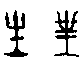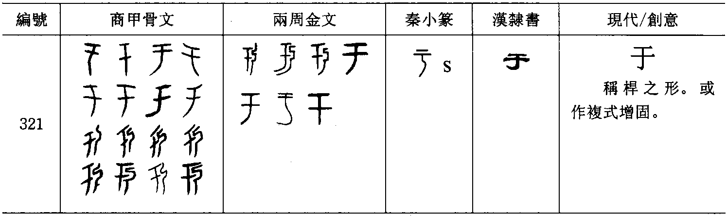再如監字(字326) 【 , 臨下也。 从臥, 䘓省聲。 , 古文監从言】作一人俯視一皿以觀看反映之自己容顏,後來以之稱呼照顏的銅鏡,又加上金的形符。此字的創意既明,則皿中有物的應是較合理的形構,沒有一點的應是省略的結果。甲骨文作沒有一點,很可能因為字形太小的緣故。眼睛與身軀分開的自是後來的訛變。身子移到皿之上的,也應是後來才有的結構調整措施。有時兩個字形的筆劃差不多,時代也相近,從創意的角度也可以提供參考。 如貧字【 , 財分少也。 从貝分, 分亦聲。 , 古文从宀分】以分貝表意。所附的从宀从分的古文字形,也是象意字。古文字形以分家而貧困的表意,可能比較不明顯,也容易被誤以為是形聲字,故而換以分貝。宀的符號以表現建築物為主,而貝才是有關財產的常見符號,比較容易被人所了解,故應是較晚的字形。類似的創意有寡字(字220), 作屋中有一大人物之狀 ( ), 表達貴族人數較一般民衆量少。大概也因創意不清楚,戰國簡書所加人身前後無意義的填空小點可能被誤識為分字 ( ), 以致看起來有表達分家而致家產減少之創意。攸字(字306)甲骨文作手持杖撲打一人之狀,到了西周中期演變成兩形: 一是人之背後增一直線 ( ), 一是增三下垂小點( )。 《說文》的意義“行水也”, 應是打得背部血流下行的引申義,可推論三小點是具有輔助說明的作用,一直線應是不明創意的訛變, 是較遲的字形。 至於 《說文》所附的秦刻石字形 ( )从水从攴,表達以棒擊水,難符創意。水的構件可能是由人與三小點的字形訛變而不是全形省略了人的部分,時代應更晚。又如疊成三角形是常見的排列形式,雖然有的字在甲骨文已是如此,但從創意的觀點看,知應是較遲的寫法。 如齊(字327) 【 , 禾麥吐穗上平也。 象形。 凡齊之屬皆从齊】,甲骨文大都作三尖狀物排列成三角形之形勢。尖狀物是否為禾穗是值得討論的,鑒於古代情況,它很可能表現銅鏃。為了穩定箭的飛行,箭桿與銅鏃都要求製成一定的規格,鑄造時才可控制鑄成同樣的大小和重量。它既然表達齊平、齊同的意義,則三物應處在同一平面上,因此可假設甲骨文之做三尖物齊平之字形者較原始。魯司徒仲齊盤上的齊字作三物齊平狀,可能反映非常早的字形。從文字演變的常律看,多件平列的都演變成上一下二的三角形,齊字也應是其中的一例。(四)演變的常律 字形的演變,類似的筆劃常習慣性地按同一模式進行,也可用來判斷有同樣變化的字的演變方向。如帝字(字72)可能作花朵形,或捆紮之崇拜物形 ( ), 後來在最上的橫劃上增多一短劃 ( ), 這樣的例子甚多,如正(字35)、天(字98)、言(字233)、平(字310)、王(字312)、辰、商(字336)、競(字337)、不、雨、辛、可等,就可據以判定演變的方向。它的可靠性可能要高過文獻年代或性質的條件。文字的使用或演變,除上述的復古外,或由於區域性的演變進度有差異,或甚至出於某特殊的情況,如小篆的有意整理戰國文字,有意或無意地恢復了早先的字形,以致年代較晚的字形保持了較早形式。如此,字形演變的常律就成了判定字形演變方向的重要條件。譬如平字(字310)金文作稱重物的天平形象 ( ), 春秋晚期或戰國時代時, 循自然演化的常態, 在平劃之上加一短橫 ( ), 但小篆則去掉短橫( )。 同樣的, 天字(字98)甲骨文作一人特著其頭部形 ( )。 圓頭因刀刻而成方形 ( ), 簡易成兩短劃 ( ), 再省去一劃 ( )。至春秋晚期, 平頭之上加一短橫 ( ), 小篆去掉短橫 ( )。 下字(字52)甲骨文作一長劃之下一短劃 ( ), 西周時下增一直豎 ( ),戰國時也在平頭之上加一短橫 ( ), 小篆則去掉短橫 ( )。 這幾個字,雖然一般認為小篆的時代較戰國時代為晚,但可以根據演化的規律,知沒有短橫的應是較早的字形。它不但有助字形演變方向的確定,有時更早的字形或資料雖還未出土,就可以根據字形演變的規律,推測其較早的字形。文字初創時,每一點一劃都表達具體的意義,故如有一點一劃不能給予合理的解釋,則創意的解釋就有問題。有時就可以依演變的規律,復原正確的字形,不必理會訛變或沒有意義的填空部分。譬如商、周、興(字149)、高(字73)、裔等字,□的構件是常見的無意義的填充,談到創意時,就可以不理會它。如果想強加說解,可能就會被誤導。譬如興字, 甲骨文絕大多數作四手共舉一輿架之狀 ( ), 第三期有時作肩輿之下的空間多一口 ( )。從演變常律, 知口的部分是無意義的填充,其創意的重點應在升高的動作。如果因為包含有口的構件,就轉移了創意的重點,強調其為舉重物時的喊叫聲,並聯想及詩歌的賦比興,如此不但不得創意的重點,連字形演變的方向也顛倒了。但尋字(字296), 第五期有多一□的字形 ( ), 它不在填空的位置, 就可視為別義的意符,而不是無意義的了。如果變化不合某種常規,也對一個字是否可能有某種變化的判定有所助益。譬如攻字(字120),甲骨文第一期作手持棒槌一類的曲柄殳敲打一件下有三小點的工形物 ( )。 作為填空的無意義增繁小點, 通常是對稱的。工形物下的三小點是不規律、不對稱的,因此沒有三點的攻字可能是由有三點的攻字簡省演變來的。這樣就不能輕易地把它當作形聲字看待,而要把它歸屬到表意的字形,即是說,不能不對三小點作創意的合理解釋。由於曲柄殳在甲骨文常代表樂槌,而商代也出土長條形石磬。石磬的調音工作,以刮削石磬的表面