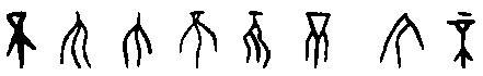 舞字(字146),原象一人雙手下垂而持拿舞具之狀,字的筆劃並不簡單,但它表現跳舞的意象並不很清楚。《說文》 出現下加兩腳的字形。兩腳的舛是為顯明跳舞的動作。由於此字在小篆之前都不見加舛的字形,以年代原則,自可斷定有舛的字形較遲,但如果單從創意的原則, 就難判定何者較早。 粦(字266) (巫師身上塗磷 )、舜【 , 舜艸也。 楚謂之葍, 秦謂之藑。 蔓地生而連華。 象形。 从舛,舛亦聲。 凡舜之屬皆从舜。 , 古文舜】 (身上塗磷的巫師或神像在櫃中)都具有同樣的增加舛或簡省舛的演變方向問題。此二字的意義和表現兩腳的舛的關係似乎不大, 而甲骨文含有粦構件的 字( 《合》27286)已有加舛的例子,似乎難判定加舛的是較早或較遲的字形。若以舞字到很晚的時代都還無加舛的例子看,舞字加舛後,巫師跳舞的形象更為明顯,可借助推論,粦與舜字,有舛的字形較可能是後來使意義明顯的增補。若像楚簡以及一些戰國的金文,舞字的舞者兩手被省略或變形了 ( ), 它屬創意的絕對必要部分被省略或變形,自是較晚的字形,但在使用年代上,它又早於有完整人形的小篆字形,這又一次說明年代並不是有效而絕對的判定字形演變方向的依據。再如棄(字323)【 , 捐也。 从廾推棄也。 从𠫓。 𠫓, 逆子也。 , 古文棄。 , 籀文棄】, 甲骨文有二形, 一作雙手持簸箕將帶有血水的嬰兒丟棄之狀,另一形則又加雙手拉繩以示絞殺的動作,兩形都出現於第一期。絞殺的動作似無必要,字形也太繁,故較可能是後加的輔助說明,終因太繁而被淘汰。