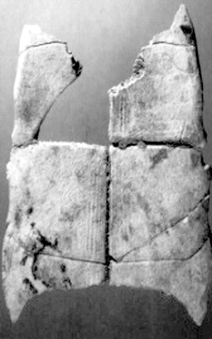 7 1. 龟腹甲刻符(M344:18) 2. 龟腹甲刻符(M355:15) 3. 龟腹甲刻符(M387:4) 4. 龟背甲刻符(M387:4) 5. 石颜料块刻符(H141:1) 6. 陶卷沿罐刻符(H190:2) 7. 陶缀刻符(T108 此外,贾湖遗址还发现了“ ☚ 新石器时代考古发现的文字起源线索 二、蚌埠双墩遗址刻划符号 ☛ |