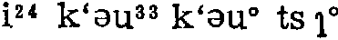极少的量。〔例〕“哎哟!要这个样子对顾客,这意见就没的啦!没的啦!”“别,首先,您提一点儿吧!”“一点儿也没的!”“您提一点点儿!”“一点儿也没的!”“一丁点儿”“一丁点儿也没的!”“一抠抠!”“一抠抠也没的!”(内216)