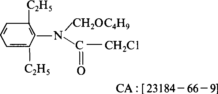 | 释义 | 丁草胺butachlor选择性芽前酰胺类除草剂,商品名马歇特、去草胺、Machete。化学结构式: