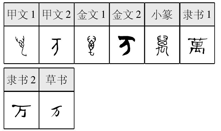 象形,甲骨文1、金文1象蝎类虫形,小篆字形增繁,隶定为“萬”,读wàn,本义为类似蝎子的节肢动物,是“蠆”(chài)的本字,假借为数词,由此引申为数量极多、副词(相当于“绝对”“务必”)等。甲骨文2、金文2本义未详,隶定为“万”,与“萬”同;又读mò,用于“万俟(qí)”,复姓。战国时期俗字、《手头字》、《简体字表》、《简化字表》把“萬”简作“万”。 【辨析】 ❶“万”与“萬”不是等义简繁字。 ❷以“万”作音符构成的形声字读音不同。mài:迈、劢∣lì:厉、疠。 ❸“万(萬)”可作类推简化偏旁使用,如:迈(邁)、趸(躉)、厉(厲)。 【构词】 万不得已(萬不得已)∣万物(萬物)∣万众一心(萬衆一心/萬眾一心)∣万俟(万俟)万 萬; 甲 金 篆 隶wàn【析形】象形字。甲骨文、金文字形像蝎子之形,是“蠆”(虿)的本字。甲骨文常借“萬”字表千万之万。金文、小篆字形下部增繁,专用来表数;又另造“蠆”字专用来表示其本义。今简化字作“万”,为古代异体字。 【释义】《说文》:“虫也。”本义是一种蝎子类爬虫。出土文献和传世文献皆假借为数词,表示十千。数目“万”是比较大的数,故引申为众多、极多,如[万水千山]、[万众一心]、[万古长青]。又表示程度深,如[万幸]、[万不得已]。 【shape analysis】It is the pictograph character.In Oracle and Bronze Inscriptions it is like a scorpion's form,which is the original word of蠆(虿).In Oracle it often took萬(wàn)as the million. 【original meaning】A scorpion.Unearthed documents and literature use it as numbers,the ten thousand. |