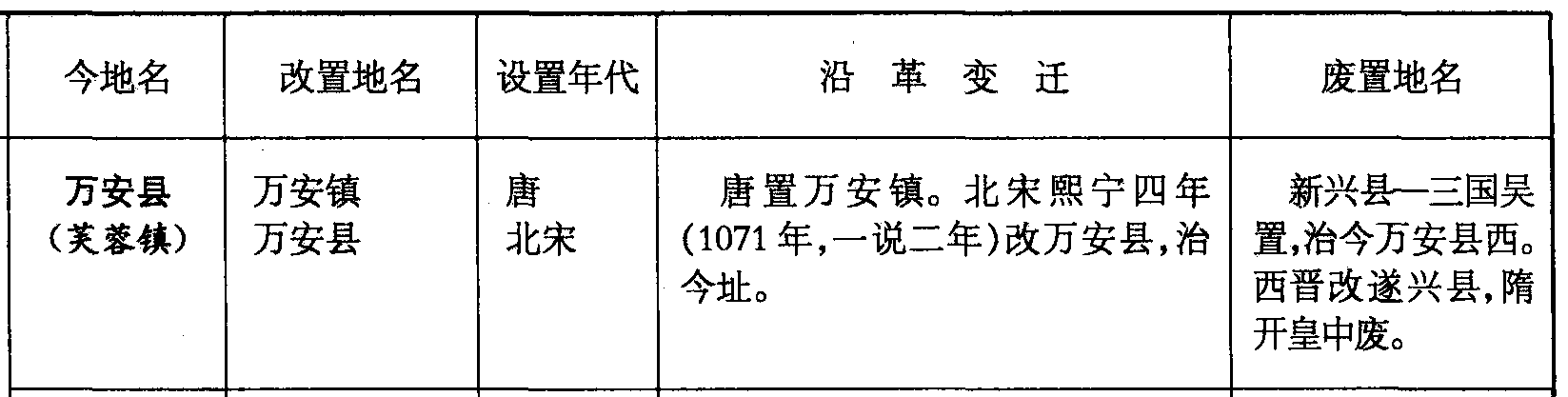 万安县(芙蓉镇)万安镇万安县唐北宋唐置万安镇。北宋熙宁四年(1071年,一说二年)改万安县,治今址。新兴县—三国吴置,治今万安县西。西晋改遂兴县,隋开皇中废。