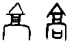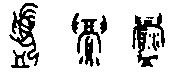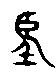 皿(字81)【 , 飯食之用器也。 象形。 與豆同意。 凡皿之屬皆从皿。讀若猛】,畫一個日常使用的圈足容器形。特徵是不畫出器的口緣而與容器豆 (![]() ![]() )有所分別。章(字82)【 ,樂竟為一章。 从音十。 十,數之終也】,象行列中手持的前導儀仗形。本是獨體的象形字,依 《說文》的解說則為表意字。龍(字83)【 , 鱗蟲之長, 能幽能明, 能細能巨, 能短能長。 春分而登天,秋分而潛淵。 从肉 , 肉飛之形,童省聲。 凡龍之屬皆从龍】,象一隻頭部有特殊形象的爬行動物形,身子的彎曲與嘴巴同向的為另一字。《說文》竟以為是童的省聲。有時候物體的某一部分非常具有特性, 深為大衆所了解, 一眼就可以辨識出來,不會產生意義上的混淆,不妨就以之代表其物體,節省書寫的時間和材料,以致形式上為: (b)描寫部分的形象以代表整體,埃及的聖書體就有很多以動物頭部代表整體的字。中國文字例子較少,大概是因為中國文字以簡要的線條描繪形體,不易確定描繪的動、植物的種屬。