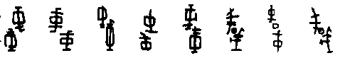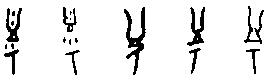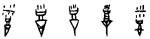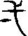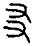 B.複體的形式 有時某些物體的輪廓相類或近似,就要加上輔助的事物,才能使其指稱明白。由於它已不純粹是描寫一物件的實體,還需要附加補充的說明,以致在形式上成為複體的形式。有人就會認為它已含有本形以外的成分,類近表意,不是純粹的象形。此形式在實物形體之外所加的部分,一是已成字的,一是尚不成字的。 (a)附加符號的複體象形,如: 而(字66),象下頷的鬍鬚形。如不畫出下頷的輪廓,就不易明確其指稱。 所加部分本不成字, 算是符號 ( )。黍(字88)【 , 禾屬而黏者也。 以大暑而種故謂之黍。 从禾雨省聲。孔子曰,黍可為酒。故从禾入水也。凡黍之屬皆从黍】,字的本體象黍之形,但植物的外形,有時很難用簡單的輪廓加以區別其間種屬的不同。黍是商代釀酒的主要材料,因此就在字形的輪廓之外加上水滴,以明示此植物的特殊用途。此水滴的數量可以不拘,雖也可以寫成水流的樣子,但主體是水滴,故還視同符號。犁(字89)【 , 耕也。 从牛, 黎聲】, 耕牛所拉的犁, 其輪廓與刀子一類的刃器相似,因此加上翻起的土塵以為分別。土塵可寫成二點或三點,故也視為符號。它被借用為牛屬的一種 (或可能以耕田的水牛以與拉車的黃牛作區別),因常與牛合文而終成一字,並成為形聲字的形式。