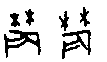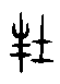 茲(字163)【 ,微也。 从二幺。 凡𢆶之屬皆从𢆶。】【 , 艸木多益。从艸,絲省聲】,兩束絲並列,創意不詳,假借為語詞。戔(字164)【 , 賊也。 从二戈。 周書曰: 戔戔。 巧言也】, 兩戈相向有所殘害,後改為兩戈相疊。誖 【 , 亂也。 从言, 孛聲。 , 誖或从心。 , 籀文誖从二或】,甲骨文作兩盾相對撞擊之狀,可能是表達慌急之時隊伍排列不整的現象( )。後來以形聲字取代。友(字165) 【 , 同志為友。 从二又相交。 , 古文友。 , 亦古文友】,朋友相互以右手輔助。金文字形下加一深坑,可能表達朋友相互協助挖掘深坑之意。劦(字166)【 , 同力也。 从三力。 山海經曰: 惟號之山, 其風若劦。凡劦之屬皆从劦】,作三把挖土工具協作,或共同挖掘深坑之狀。F. 不同字形的複合體 以其間相涉及的關係表意,為後來常見的表意字結構,相當於 《說文》的會意字。細分的話尚可分兩類: 一是構件間可掉換位置,表示意義是通過聯想而得, 如牡(字167) 【 , 畜父也。 从牛土聲】、 牝(字168) 【 , 畜母也。 从牛匕聲】, 牛與士或匕的組合, 用以表示動物的雄與雌性別。位置可左右對調,甚至上下排列。甲骨文或以豬犬與士或匕組合用以表達各種動物的雌雄。 吠 【 , 犬鳴。 从口犬】表達狗之口所發出之叫聲,犬與口也不必有固定的位置組合。